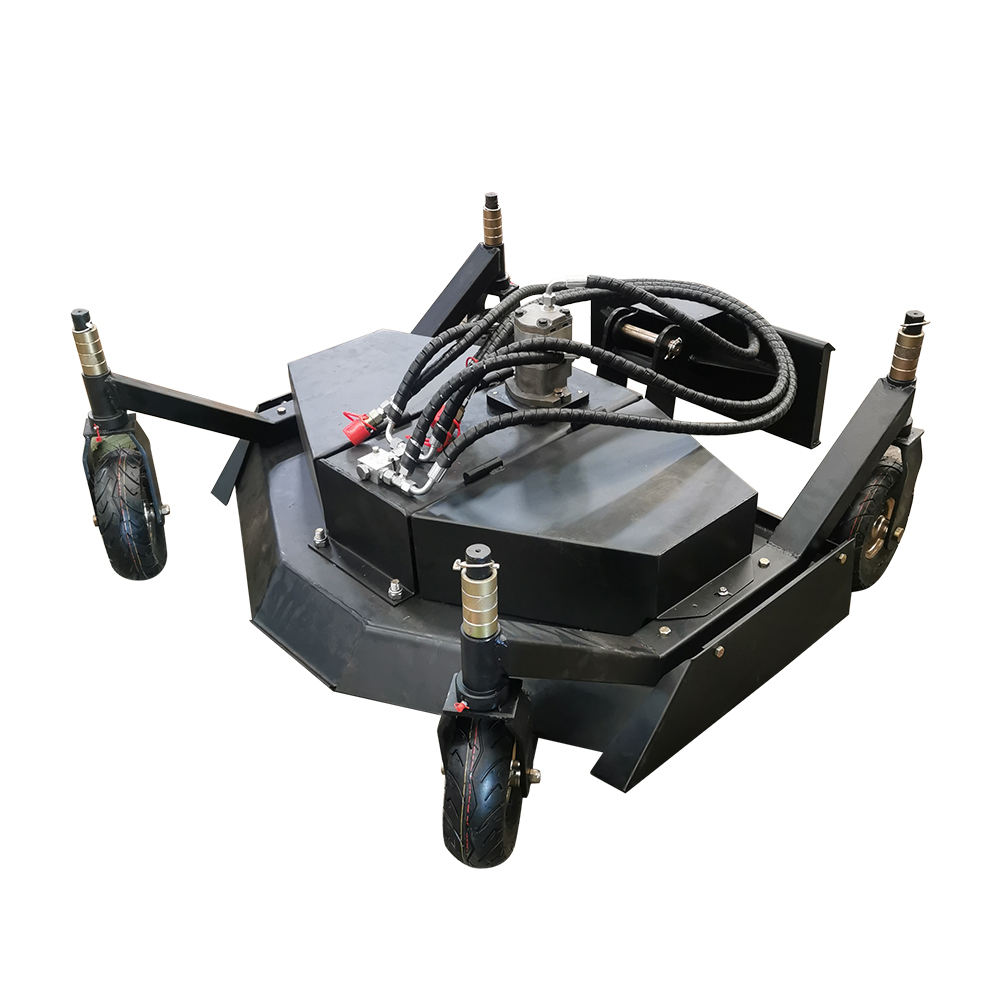 The lawn mower for mini skid - steer loaders combines high - efficiency performance, flexible adaptability, multifunctional applications, and safe & convenient design.It's equipped with a high - performance engine and sharp, high - quality blades. These enable it to handle thick or tall - stalked grass easily, cutting efficiently, smoothly, and neatly.Adapted to mini skid - steer loaders, it can operate flexibly in complex terrains like narrow passages, slopes, and obstacle - filled grasslands. The cutter deck height can be precisely adjusted via the loader's control system.