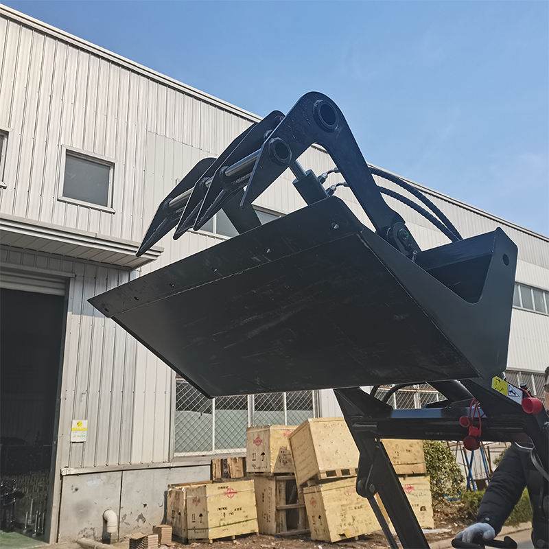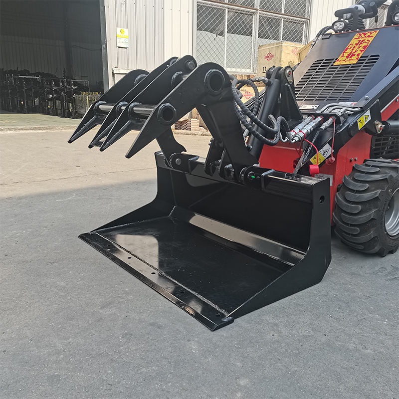 Mounted on skid steer loaders and equipment of similar tonnage, it can perform tasks such as shoveling, transporting, loading, and grabbing loose materials. It is suitable for various environments including construction debris, recycling cardboard, metal scrap, etc., and offers significant advantages when used in confined spaces.